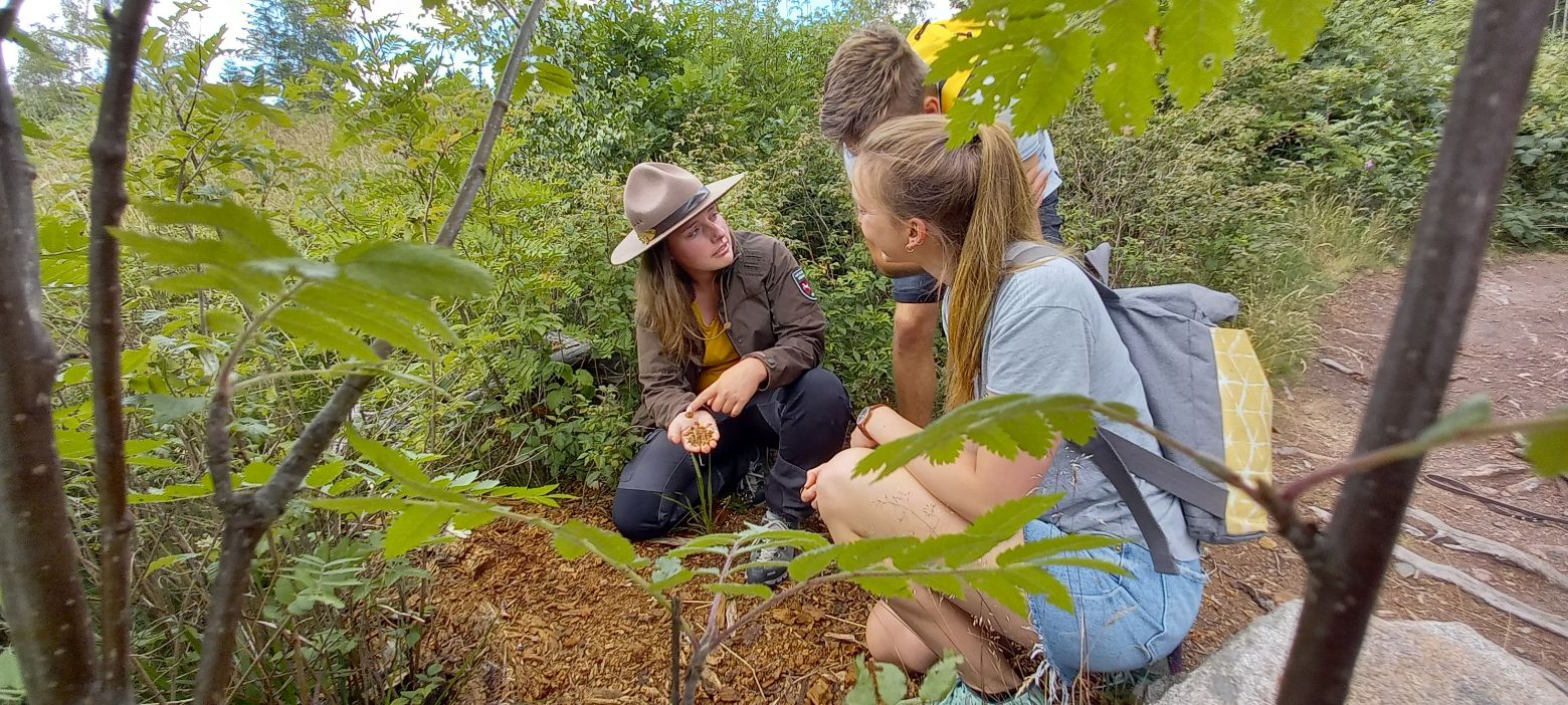 Die Besucher*innen können unsere Ranger*innen bei einer Führung über den beliebten Löwenzahnpfad begleiten und dabei spielerisch Vieles über die Natur im Nationalpark Harz erfahren. Foto: Verena Marten