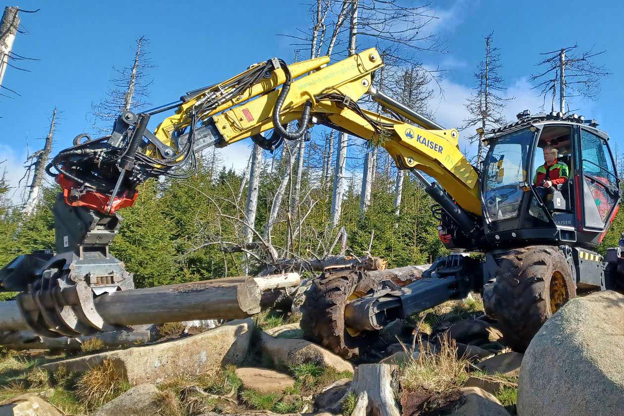 FOTO: Schreitbagger zur Totholzberäumung und Verkehrssicherung im Eckerlochstieg. Foto: Olaf Eggert;