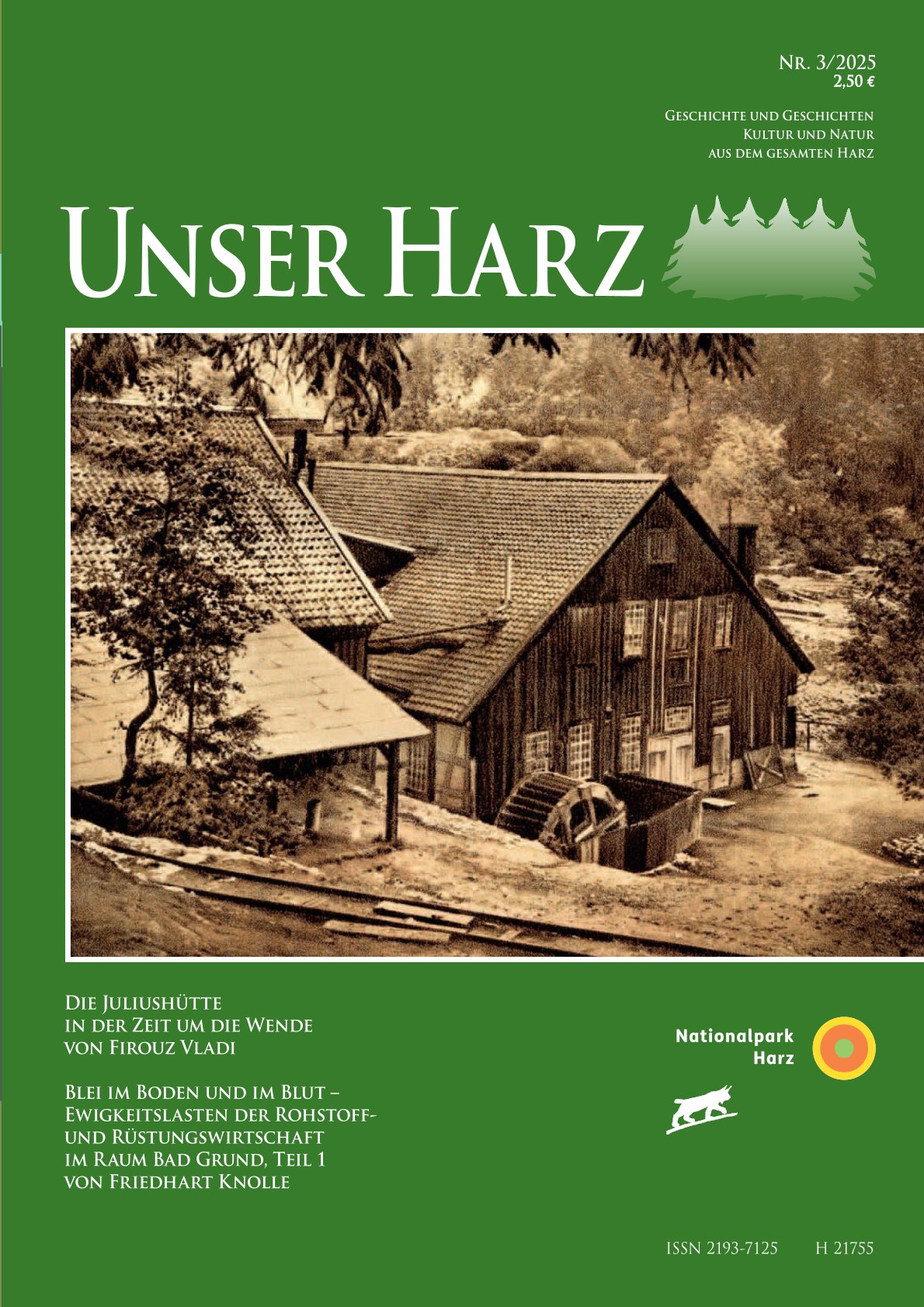 Auf ein Plädoyer für Volkstanzpflege blickt Unser Harz zurück, der Artikel von Charlotte Fresen stammt aus der Januar-Ausgabe des Jahres 1958. Dass sie sich vor 67 Jahren für den Erhalt des Volkstanzes aussprach, lässt darauf schließen, dass der Tanz schon damals Nachwuchs und eine Lobby gebrauchen konnte. Seit 2015 gehört die „Volkstanzbewegung in ihren regionalen Ausprägungen in Deutschland“ zum „Immateriellen Kulturerbe“ der UNESCO. Zum Immateriellen Kulturerbe zählen lebendige Traditionen aus den Bereichen Tanz, Theater, Musik, mündliche Überlieferungen, Naturwissen und Handwerkstechniken. Seit 2003 unterstützt die UNESCO den Schutz, die Dokumentation und den Erhalt dieser Kulturformen. Damit auch alte Tänze weiter überliefert werden können, dafür sorgt unter anderem das „Wernigeröder Tanzbüchlein“ von 1786. Wie es in Braunlage wiederentdeckt wurde, berichtet Leserbrief-Schreiber Karl-Günther Fischer. Im 80. Jahr der Befreiung blickt Firouz Vladi zurück auf „Die Juliushütte in der Zeit um die Wende“. Am 8. April findet die Gedenkfeier am ehemaligen Außenlager Ellrich-Juliushütte statt. Friedhart Knolle befasst sich mit den „Ewigkeitslasten der Rohstoff- und Rüstungswirtschaft im Raum Bad Grund“ (Teil 1). Außerdem fasst er die aktuellen Ergebnisse eines Gerichtsurteils des Oberverwaltungsgerichts Sachsen-Anhalt im Gipskonflikt um das Biosphärenreservat Karstlandschaft Südharz zusammen. Um „phytoparasitische Kleinpilze“ und die „Zitzengallenfliege“ geht es diesmal im Nationalpark-Forum.