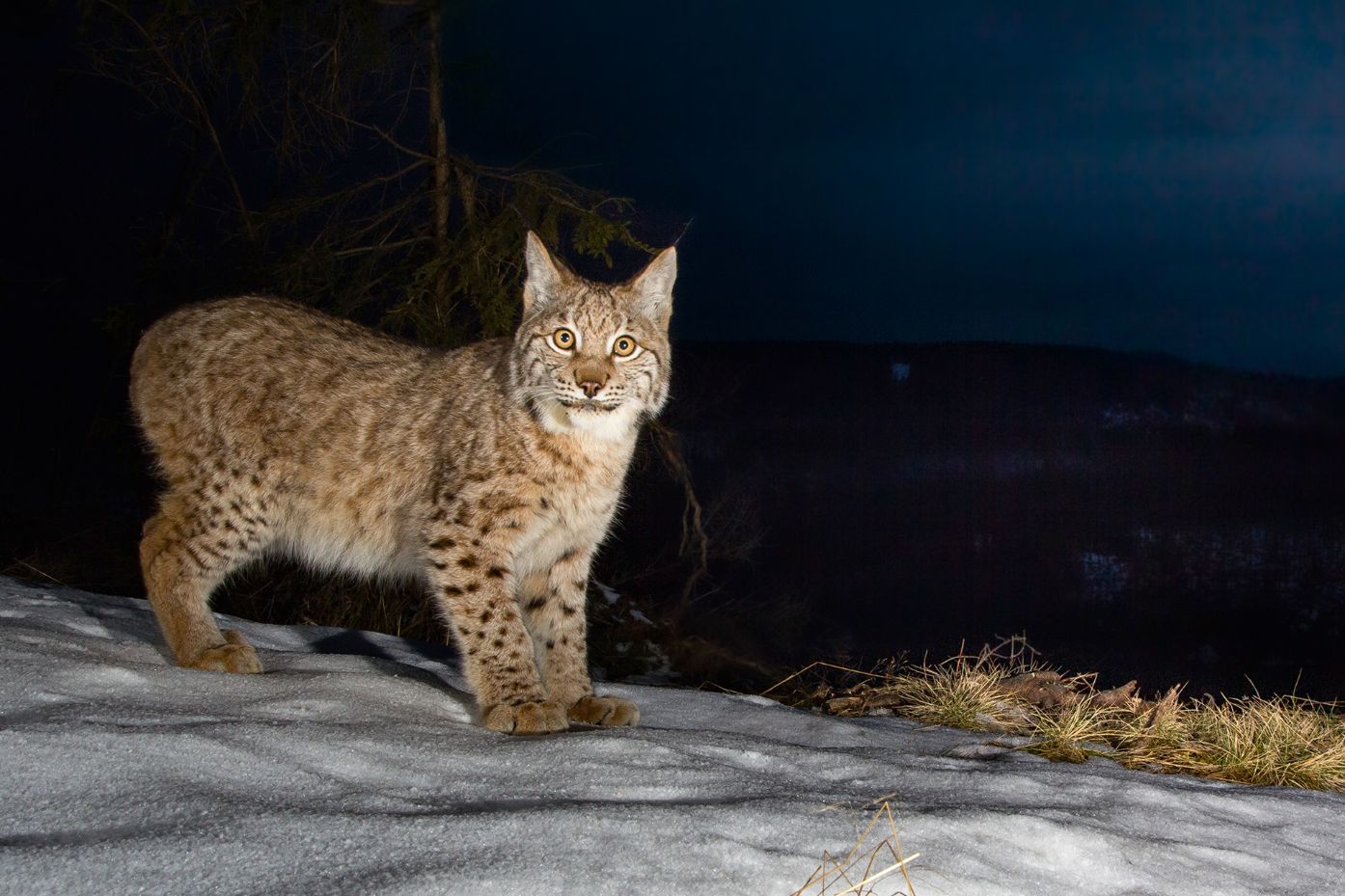 FOTOS 2 + 3 : Fotofallen-Aufnahme eines Luchses im Nationalpark Harz. Foto: Ole Anders