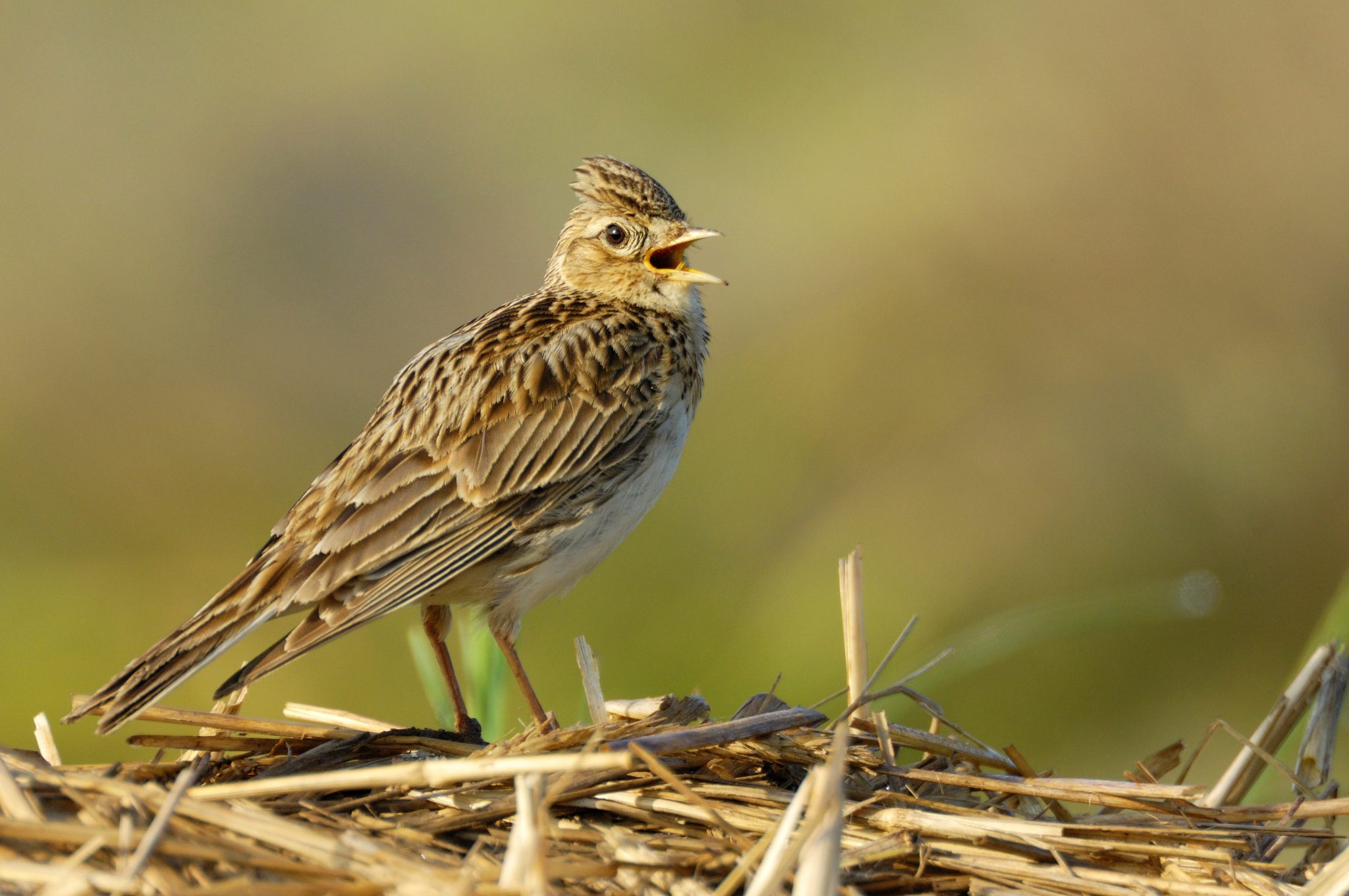 Anl. Foto frei mit dieser PI: Der Bodenbrüter Feldlerche ist auch durch freilaufende Hunde gefährdet; Foto Manfred Delpho.