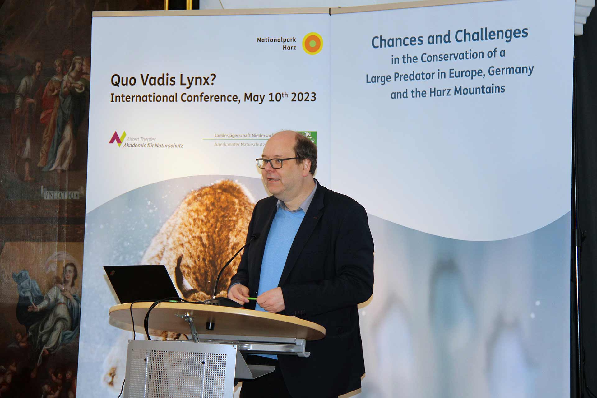 Wernigerode, 11. Mai 2023. Der Nationalpark Harz richtet gemeinsam mit der Alfred Toepfer Akademie für Naturschutz und der Landesjägerschaft Niedersachsen e.V. die Internationale Tagung „Quo Vadis Lynx?“ über Chancen und Herausforderungen bei der Erhaltung des Luchses als einem großen Beutegreifer in Europa, Deutschland und dem Harz aus. Zum Auftakt am 10. Mai berichten im Klosterhotel Wöltingerode in Goslar/ Vienenburg Luchs-Expert*innen aus der Schweiz, Italien, Slowenien, der Slowakei und Deutschland aus ihren Projekten.