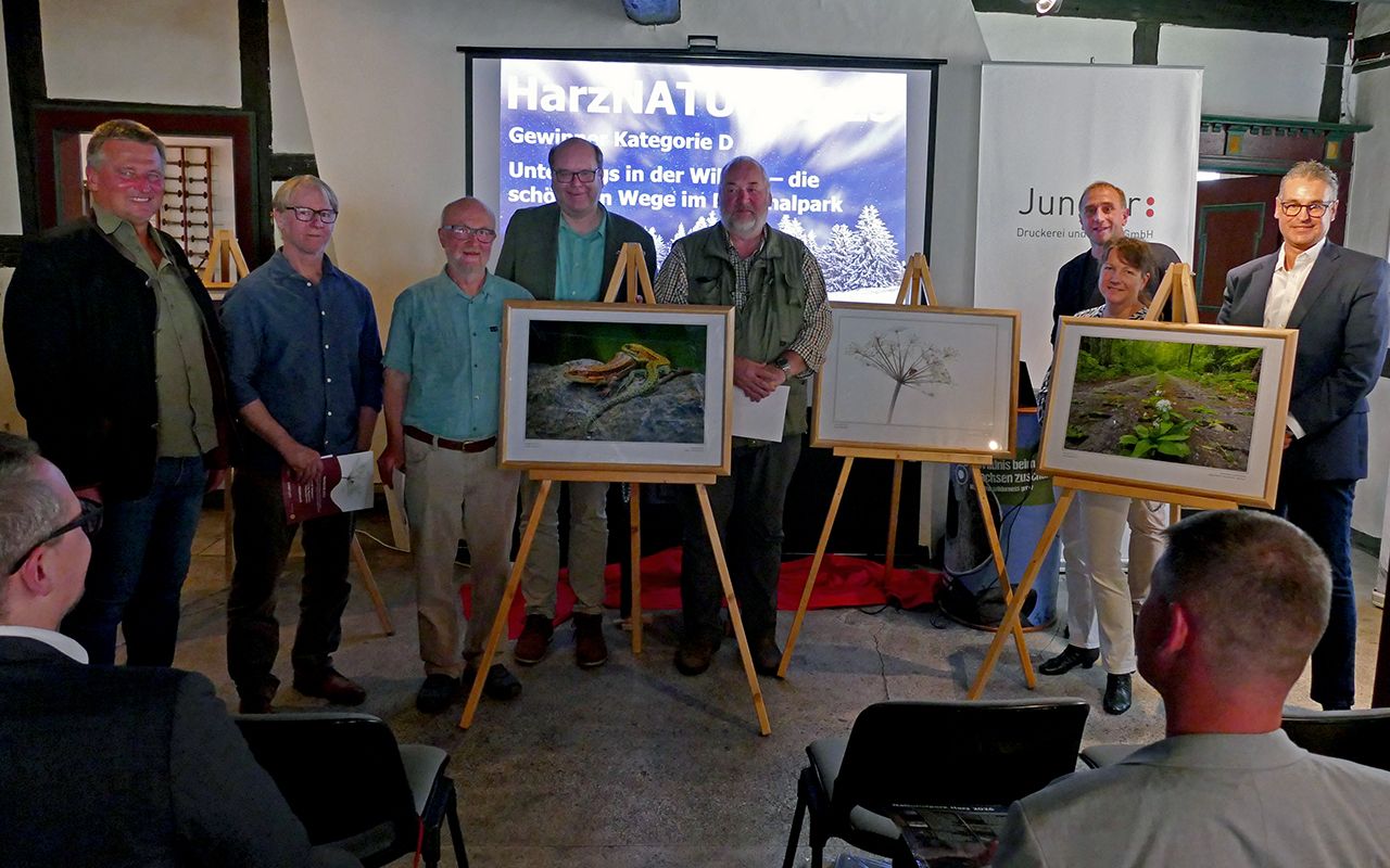 Der Gesamtsieg und der erste Preis in der Kategorie A gehen 2025 an Jürgen Trull aus Osterode für seine „Waldeidechsen“. Die Aufnahme von Nordlichtern mit dem Titel „Aurora Boreharzis“ von Norman Wernicke aus Hohenstein errang in Kategorie B den ersten Platz. Mit dem Foto „Spaziergang“ gewann Mario Hildebrandt aus Liebenburg die Kategorie C. Und in der Kategorie D überzeugte Jürgen Borris aus Holzminden mit seinem Foto „Ehemaliger Kolonnenweg“.
