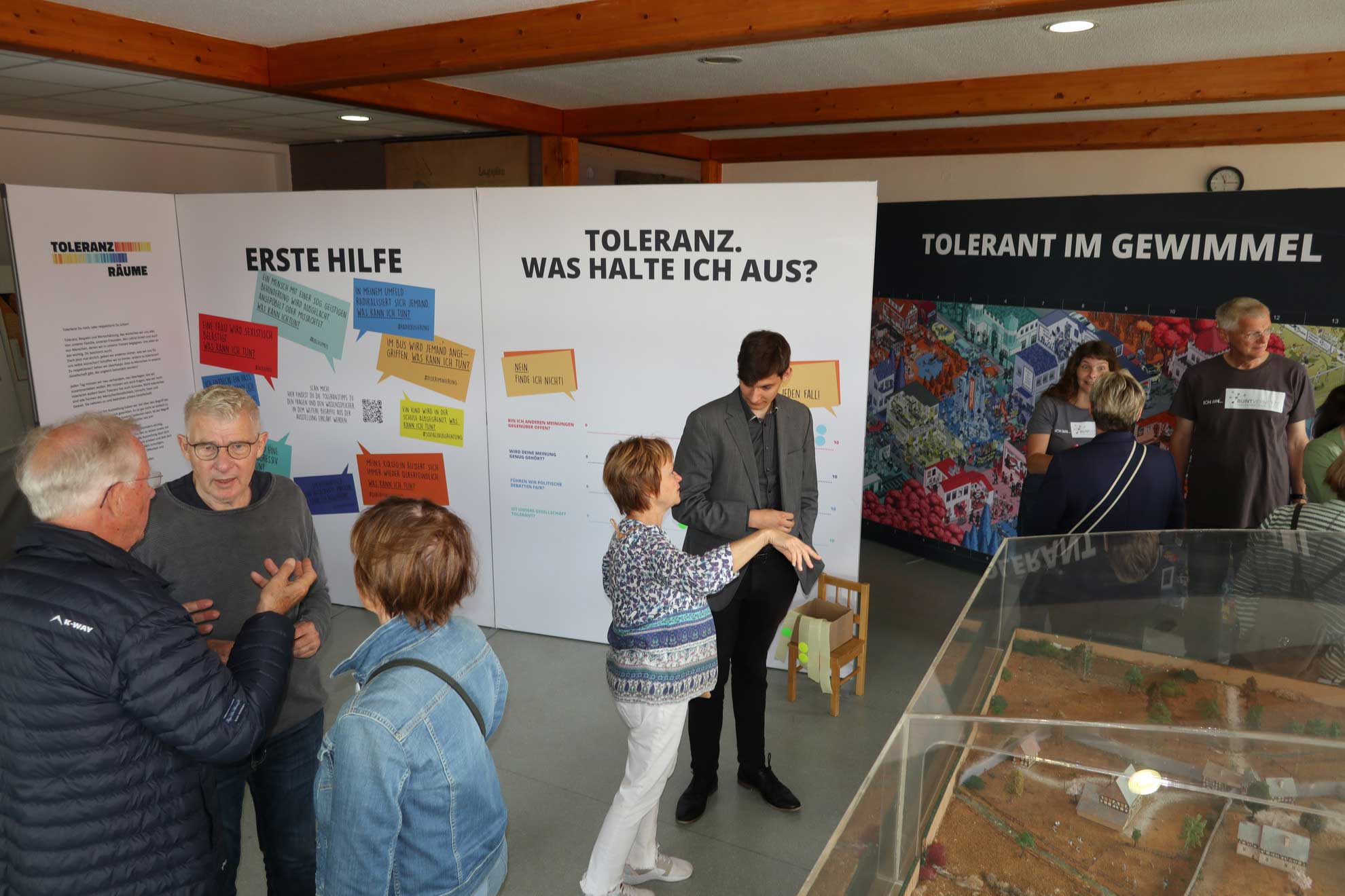 Herzstück der Toleranzwoche ist die Ausstellung ToleranzRäume, die in der ehemaligen Grundschule am Geiersberg 2 gezeigt wird. Sie lädt Besucherinnen und Besucher dazu ein, sich mit Demokratie, Vielfalt und gegenseitigem Respekt auseinanderzusetzen. Begleitet wird sie von einem umfangreichen Rahmenprogramm mit Vorträgen, Workshops, Führungen und Kulturveranstaltungen.